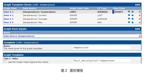 2.增加圖形模板在Cacti界面中console->Templates->GraphTemplates,按照步驟逐一添加設置,添加完成后結果,如圖2所示。